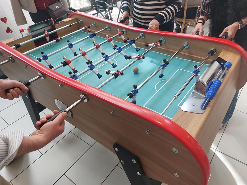 Habitants, familles, salariés, visiteurs … le babyfoot est à disposition de toutes et tous, n’hésitez donc pas à venir faire une partie, après un repas Chez Maman ou une petite coupe au salon de coiffure L’Hair du Temps !