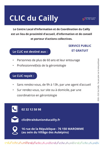 L’équipe du CLIC vous accueille, sur rendez-vous uniquement, au sein de ses locaux ou si besoin, elle se déplace à domicile